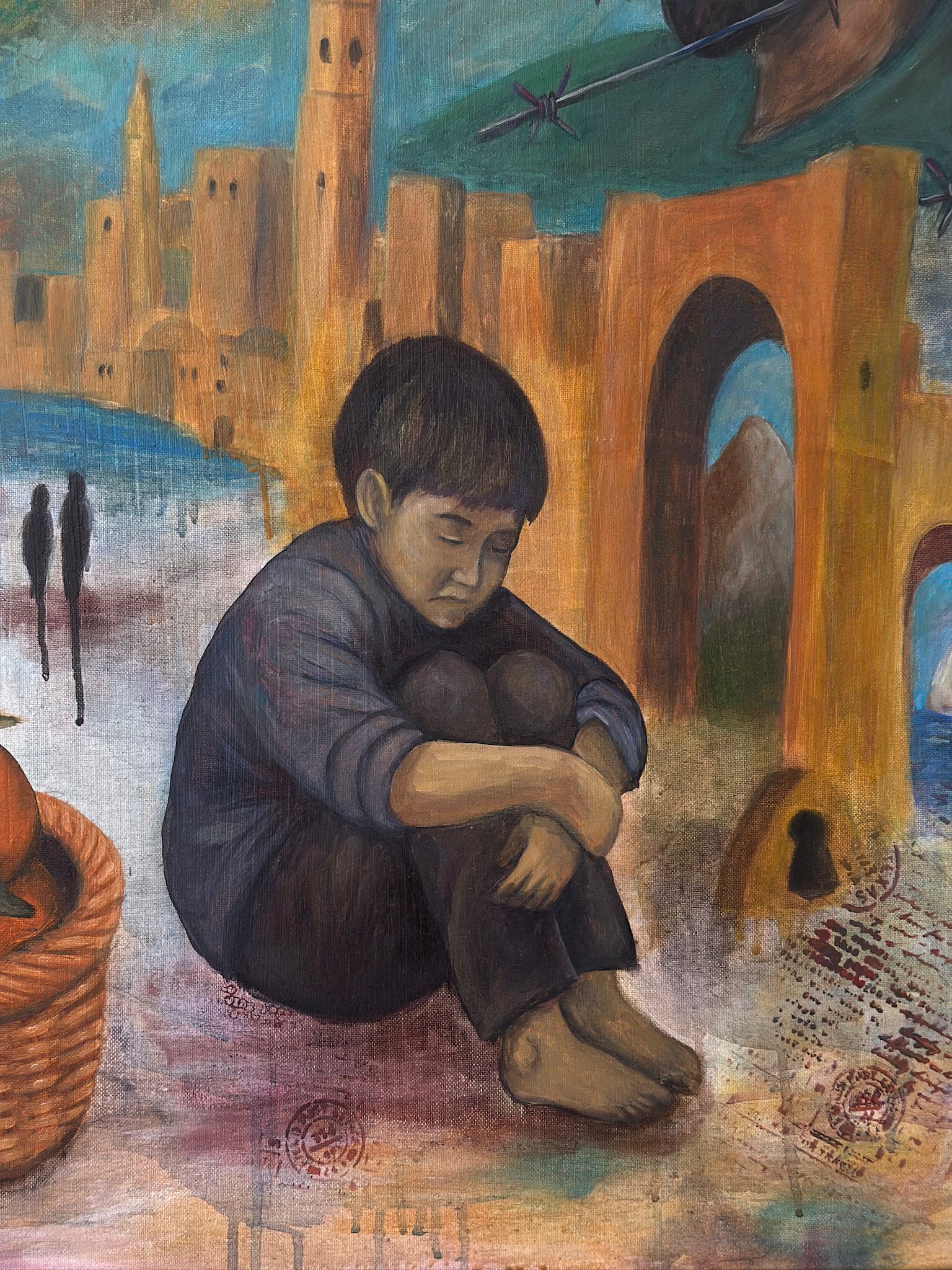 Der Junge – barfuß, in sich gekehrt –